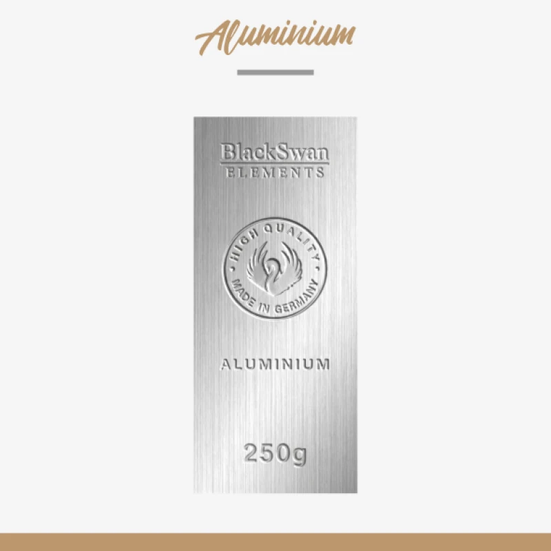 Die Vorderseite des Barrens zeigt den Herstellernamen, das Gewicht von „250g“ und die Inschrif "ALUMINIUM".