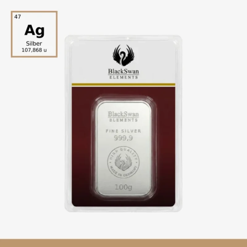 100g BlackSwan Silberbarren in Blisterverpackung