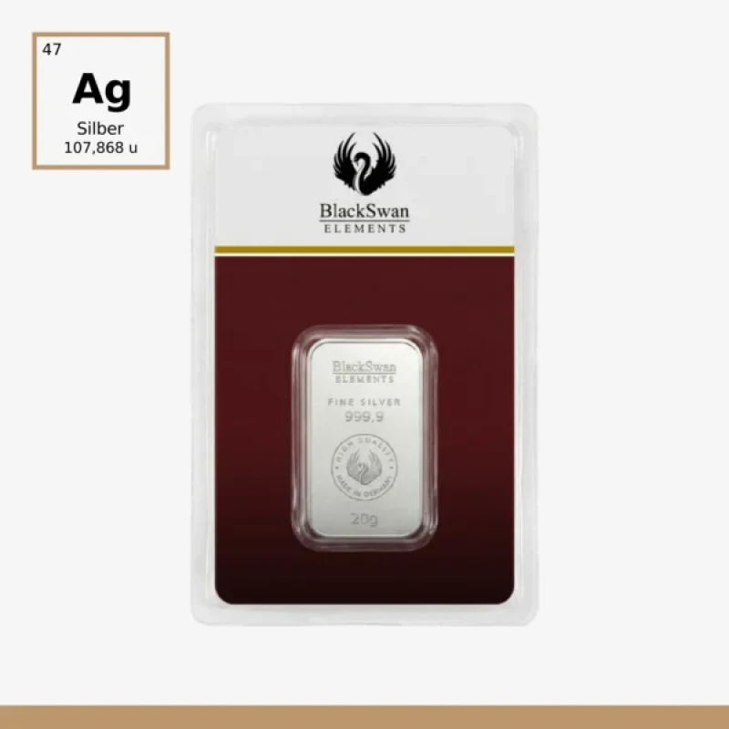 20g BlackSwan Silberbarren in Blisterverpackung